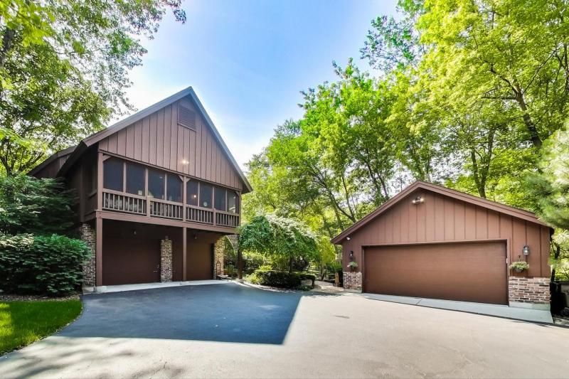 Soaring space! Secluded location yet minutes to it all! A unique treasure filled with fine finishes- absolutely inspirational! Under the shelter of this wooded 3/4-acre beautifully landscaped lot with a pond sits this 4 bedroom, 3 bath open-air home with all the modern touches. The property is paradise personified! Enjoy amenities like the spectacular in-ground pool with slide and waterfall feature, private pathways leading to the pond, all under the cover of mature trees and professional thoughtfully planned landscaping. Enjoy the outdoors from the two-tiered deck with built-in seating, or the covered screened in 2nd story porch. Volume ceilings, exposed wood beams, slatted wood ceiling, exquisite millwork, and a grand 2-story stacked klinker brick wood burning fireplace with gas start greet you in this larger-than-life-living room. It just doesn't get any better than big, bright, airy space with a cozy fire burning. French doors lead right out to the full screened porch with ceiling fans, giving you an eagle eye view of the surrounding vista, the perfect perch from early morning coffee to a late nightcap. Serve up more brilliant views in the dining room, one of the sunniest spots in the house thanks to skylights and a wall of windows. Stunning Saltillo floor tile extends to the chef's grade kitchen, a large center island with granite countertops and built-in cooktop is the hub of activity, surrounded by beautiful custom wood cabinetry, built-in double oven, counter seating, and a large eat-in breakfast area with bay window. One main level bedroom brings the element of outside in with authentic half-log walls and large closet. First floor office space with french doors to the pool-side deck is adorned with a fireplace and drenched in sunlight. First floor full bath with beautiful stone shower, mudroom access from the deck, and big laundry room add further functionality to this first floor. Upstairs, a lofted 2-level primary bedroom, when it's time to unwind and relax, take advantage of the walk-in granite tile shower, 2-person Jacuzzi tub, huge walk-in closet, and separate sitting room with a view! Two more spacious bedrooms and full bath with Jacuzzi tub/shower upstairs. Full finished basement below with large recreation space, work-out room, storage, and access to attached 2-car garage. Additional detached 2.5-car garage is ideal for any hobby! Your own oasis, quiet yet close to convenience! Easily hop on the highway (294 & 53), Metra, shopping, dining, and more! Wonderful schools- Anne Sullivan Elementary School, Macarthur Middle School, and John Hersey High School. Welcome to paradise!